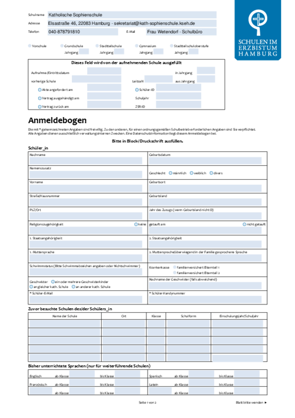 Anmeldung Schule/Vorschule